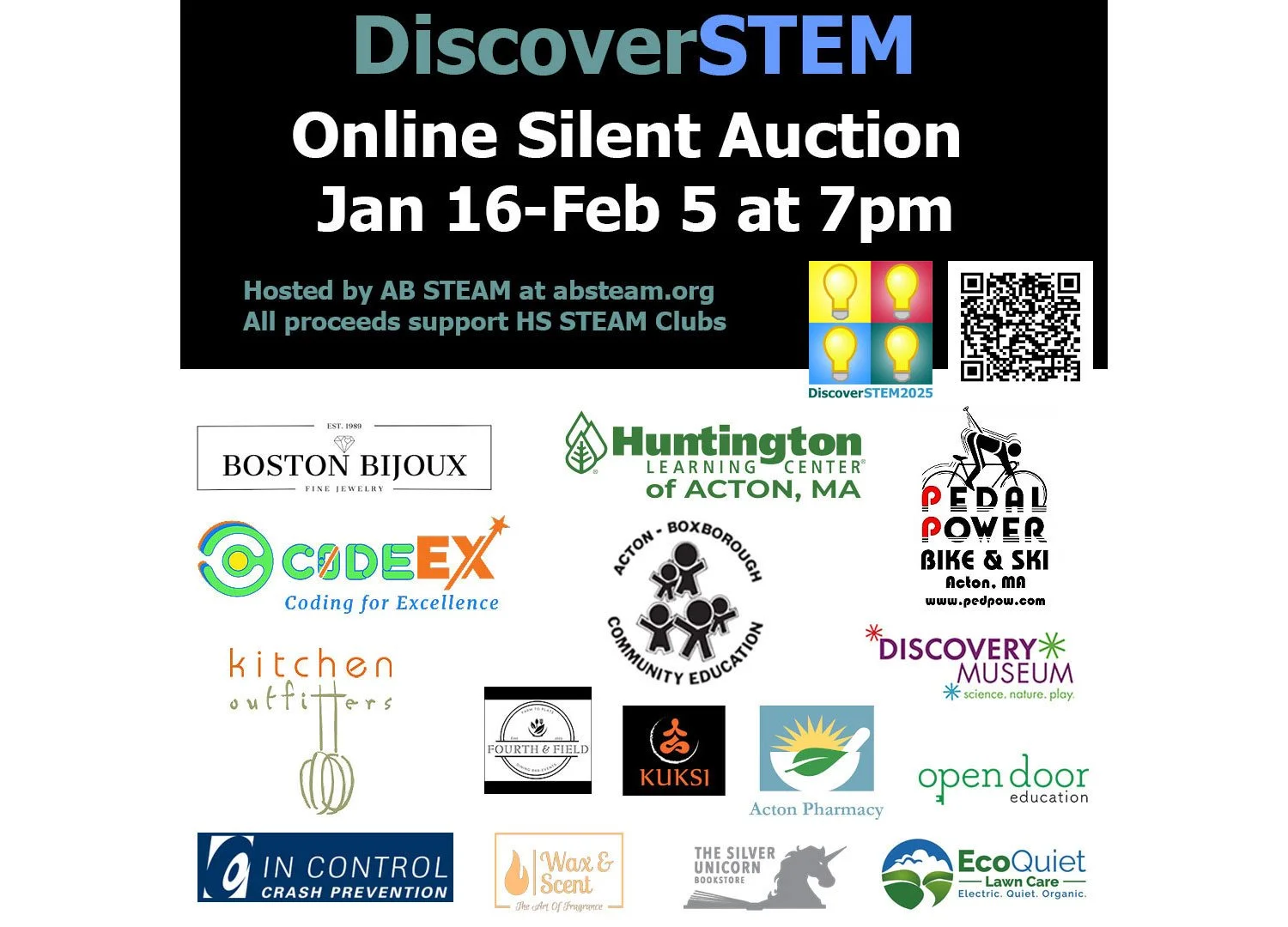 Find out details of the Silent Auction Event or to bid, click here. For info, send email to discoverstem@absteam.org.